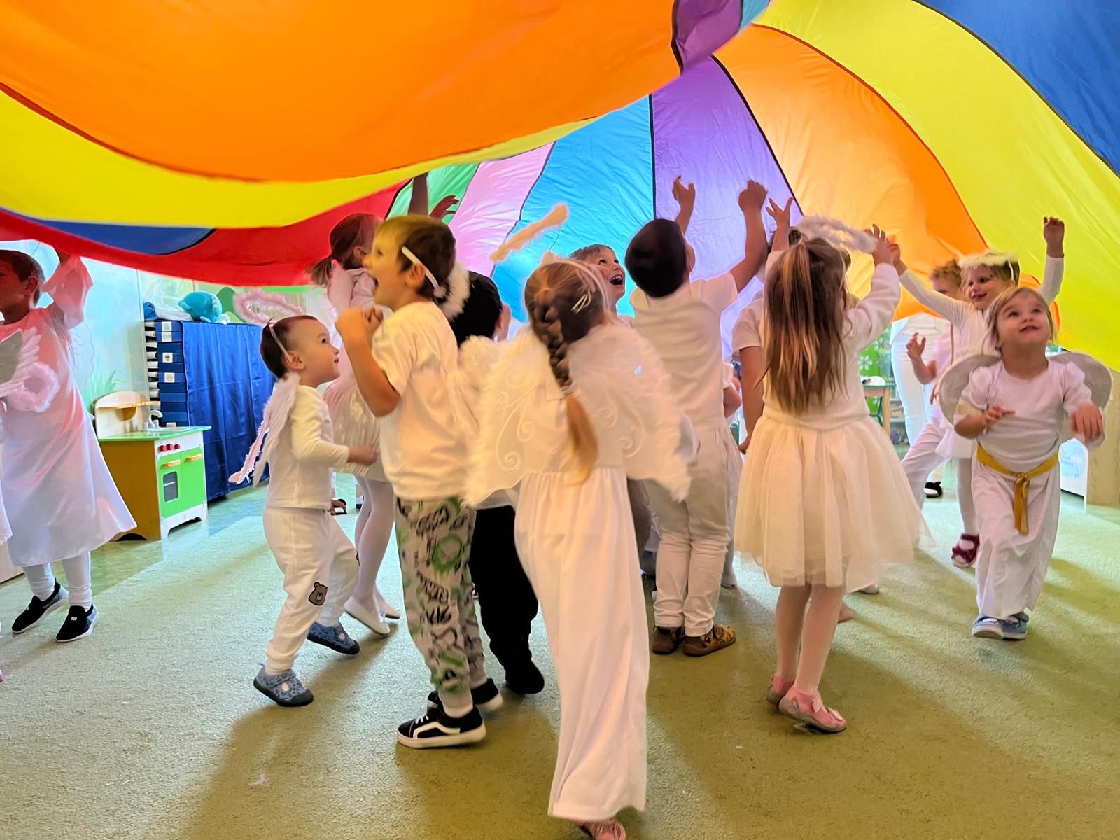 Tego dnia w naszym przedszkolu dominował kolor biały. Wszystkie przedszkolaki przypominały Aniołki. Płynąca z głośników anielska muzyka przybliżyła nam postacie Aniołów Stróżów, którzy opiekują się nami w naszej codzienności.